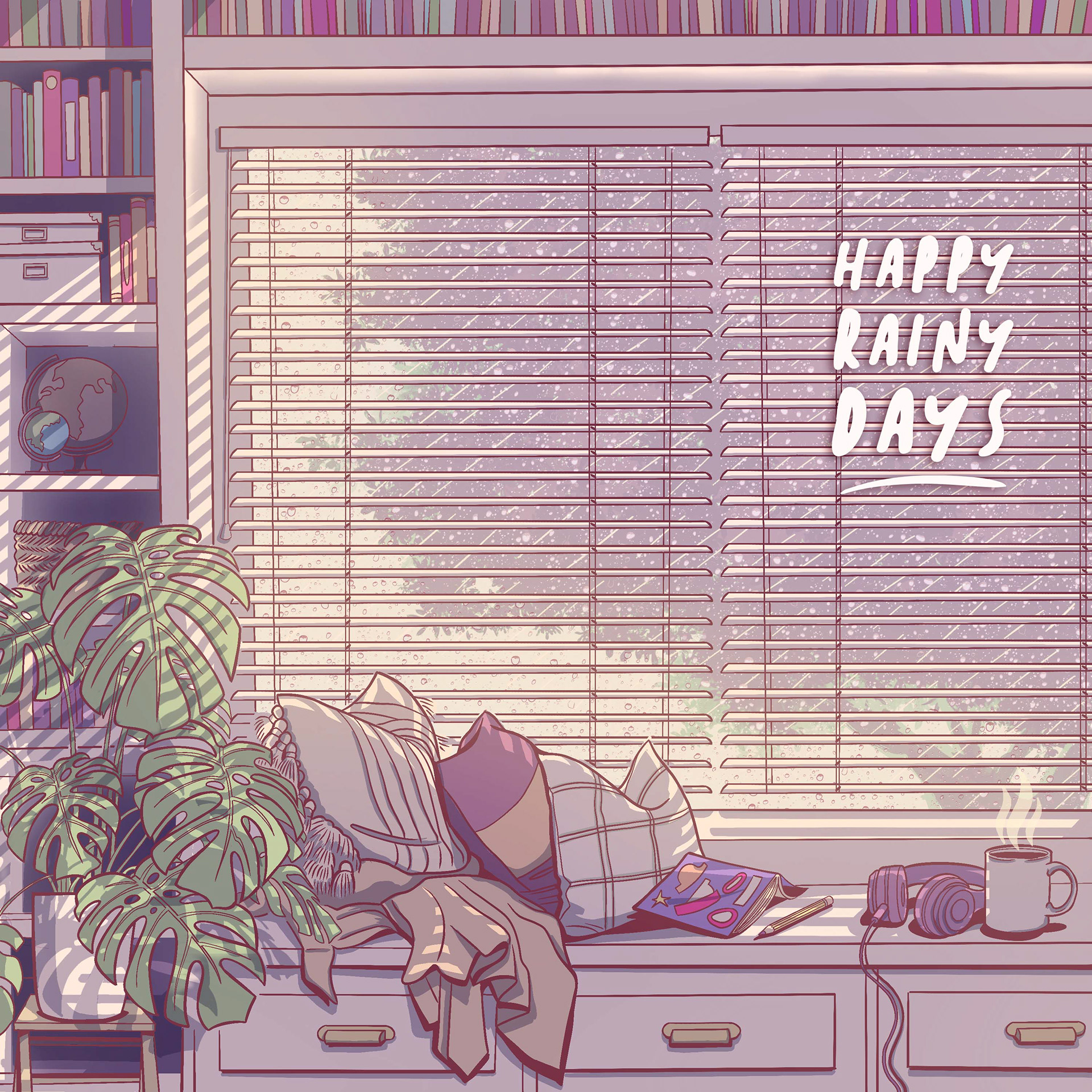 Lo-fi cover illustration for single "Happy Rany Days" by Unsleepy.